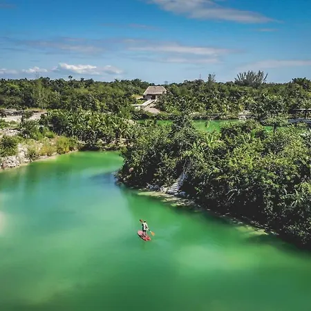 Situado en el distrito Bahía Tankah, a 3 km de los Cenotes Sac Actun, el Wakax Hacienda - Cenote & Boutique Hotel - Small Luxury Hotels Of The World Tulum cuenta con 3 piscinas al aire libre y vistas al lago.